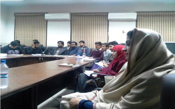 The topics, issues and challenges facing Islamic banking industry, possible solutions and the concept of Islamic Insurance (Takaful) were covered at length in the light of Quran and Sunnah and in local and global context. Mr.Syed Taqi Shah as Corporate Trainer and Facilitator, Keen of development of Young Bankers to enable them to serve their Banking Organizations, shared knowledge among the students of Islamic Finance. He encouraged young students to step forward and work for the emerging Islamic banking industry as well discussed ways to job market appropriately. Dr. Waheed Akhter emphasized on the importance of Islamic Insurance. Students actively participated in this seminar through their queries. Approximately 40 students participated and admired this knowledge sharing session. Furthermore, they furnished valued suggestions to continue further on different topics in future. Before session, Mr. Syed Taqi Shah visited the office of Management Sciences where he highlighted the significance of establishing the connections between academia and industry. Dr. Kausar Abbas (Assistant Professor, CIF) concluded the event with vote of thanks.